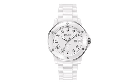 The Bulova Marc Anthony Marine Star Watch blends elegant design with sport-luxury performance. Featuring a white ceramic case, diamond accents, and luminous hands, this water-resistant timepiece delivers timeless sophistication inspired by music, motion, and modern style. Read more
