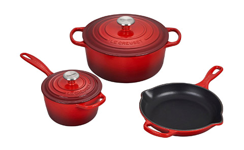 The Le Creuset Signature Cast Iron Cookware Set delivers superior heat retention and even cooking for unforgettable meals. With enamel-coated cast iron construction and vibrant Cerise finish, this 5-piece set moves effortlessly from stovetop to oven for everyday cooking or special occasions. Read more